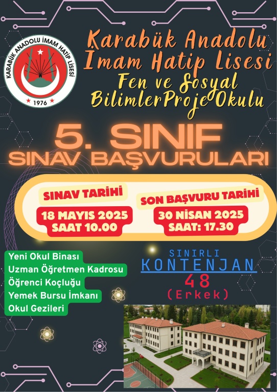 Proje İmam Hatip Okulları 5. Sınıf Sınav Başvuru ekranı açılmıştır. Öğrencilerimizin 2025-2026 Eğitim Öğretim Yılı için Sınav Başvurularını tarihleri arasında yapmaları gerekmektedir. 18 Mayıs Tarihinde yapılacak olan sınav için detaylı bilgiye aşağıdaki kılavuzdan ulaşabilirsiniz.