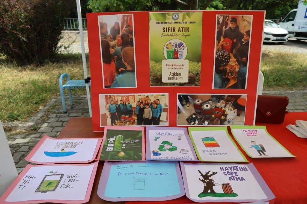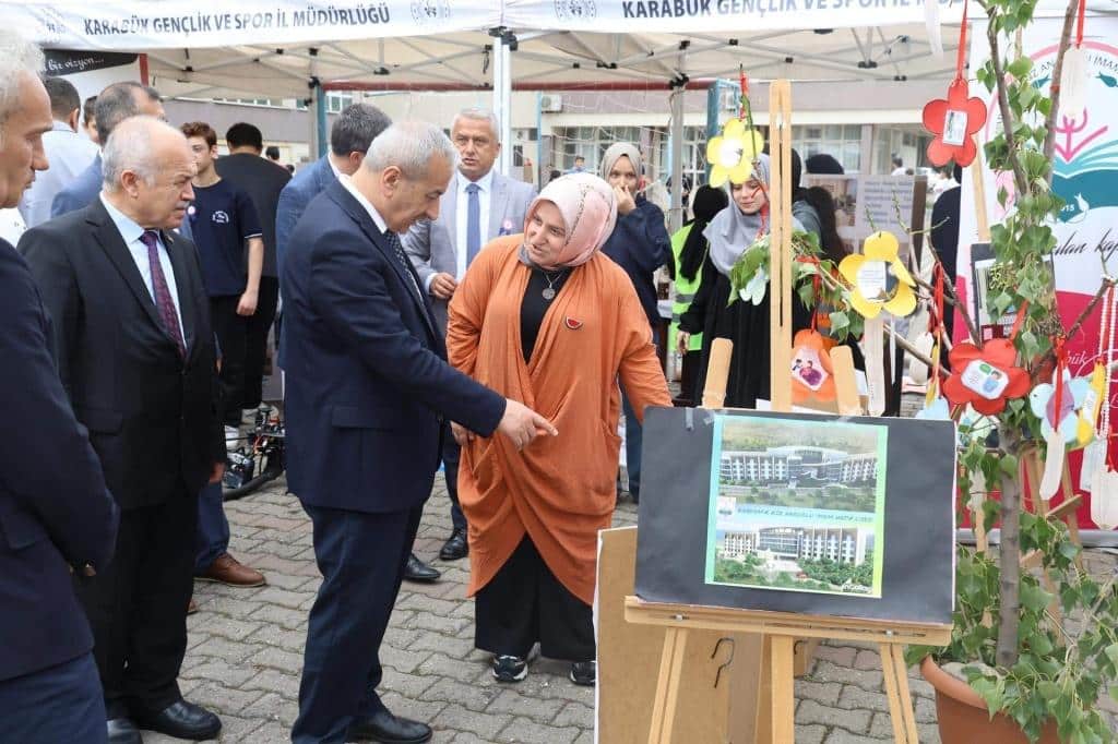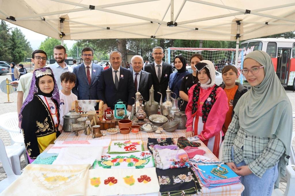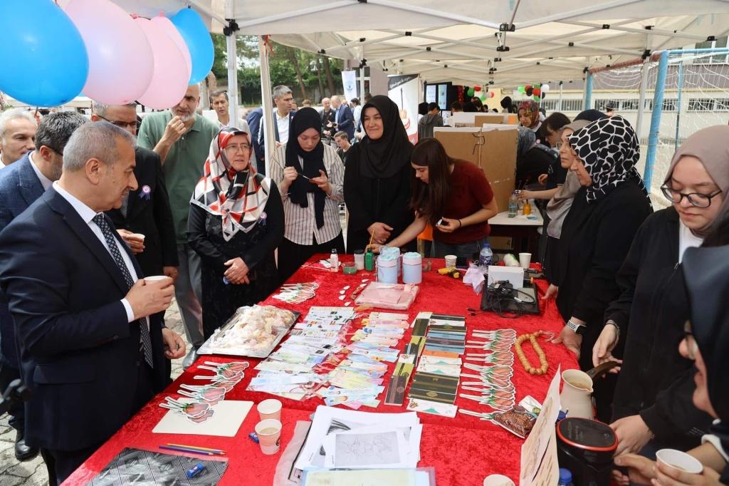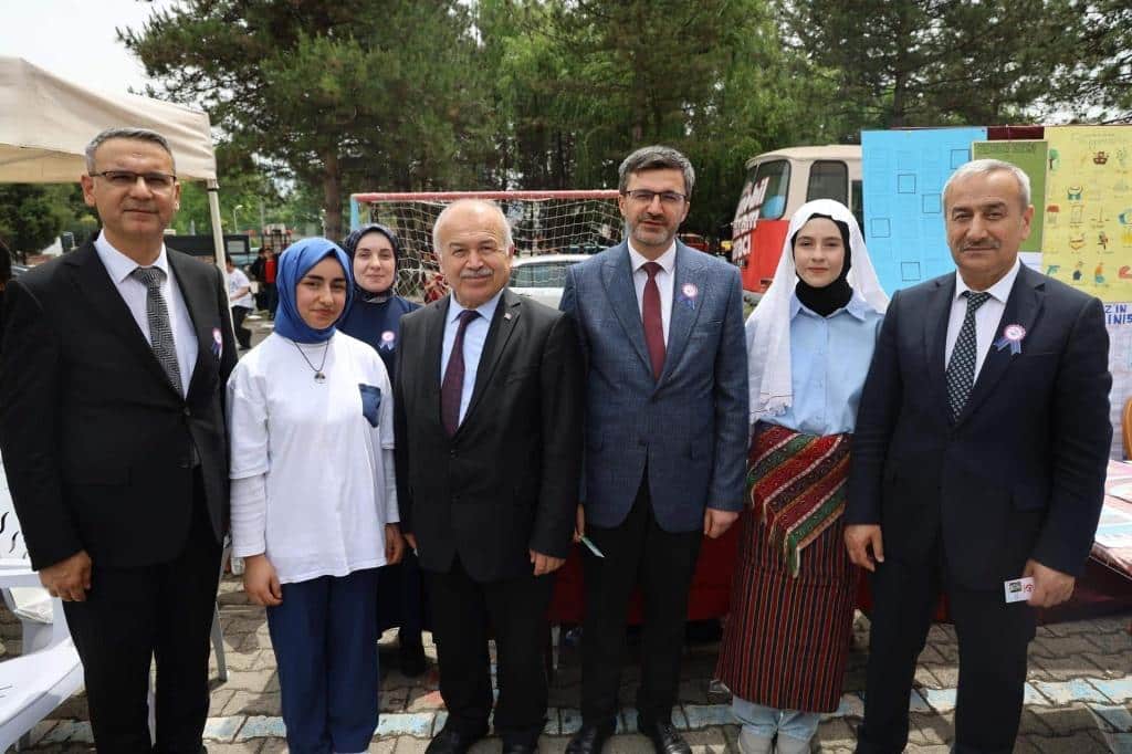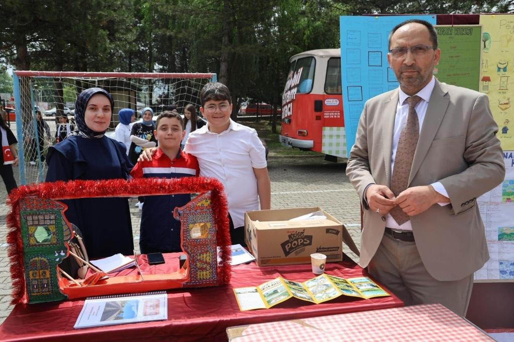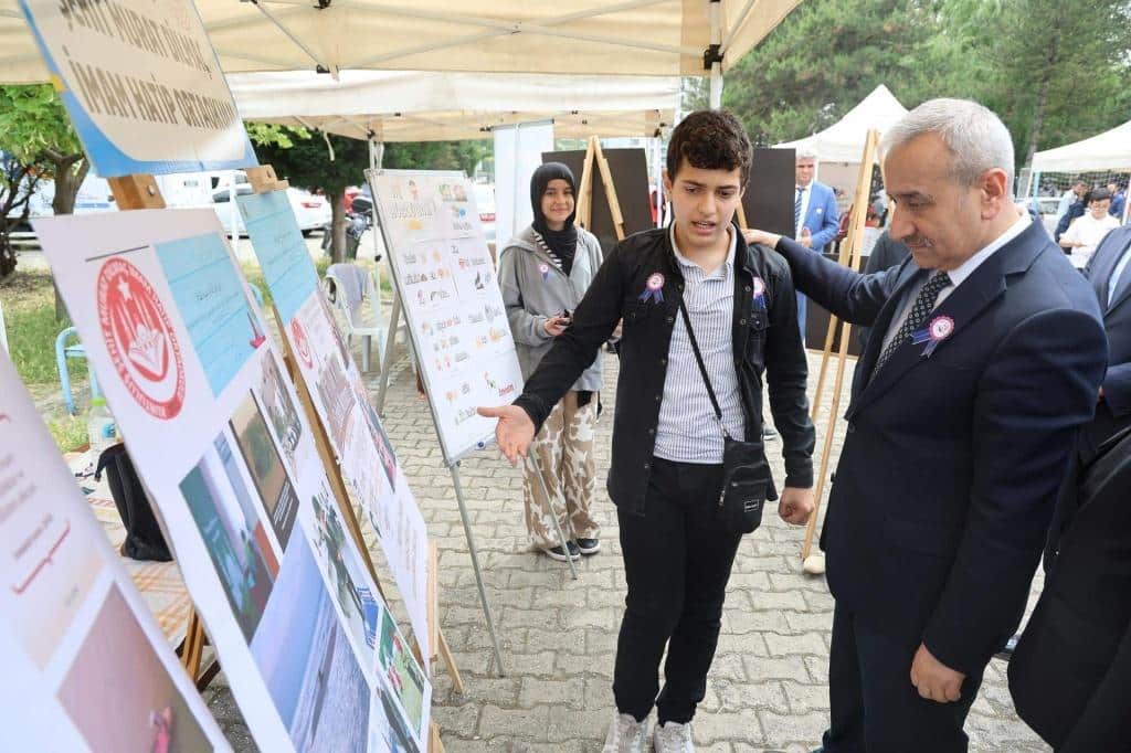 "Vakti Kuşanmak" temasıyla hazırlanan etkinlikte, 25 okulun projeleri sergilendi. Protokol üyeleri, stantları gezerek öğrencilerin yıl boyunca hazırladığı eserleri inceledi.