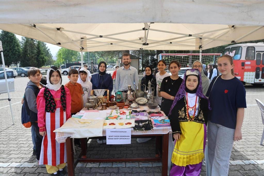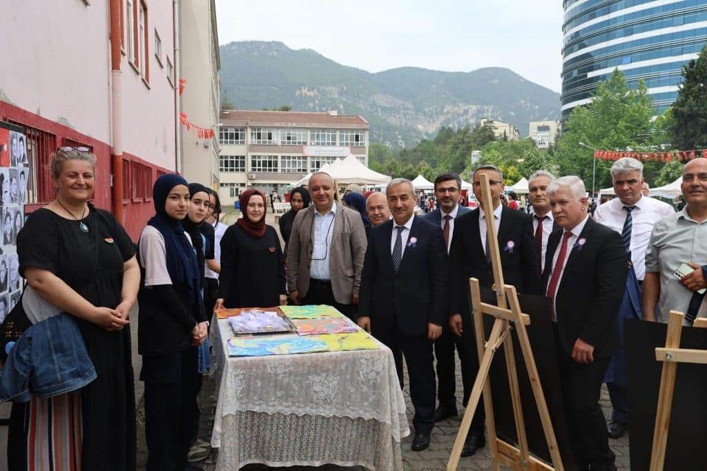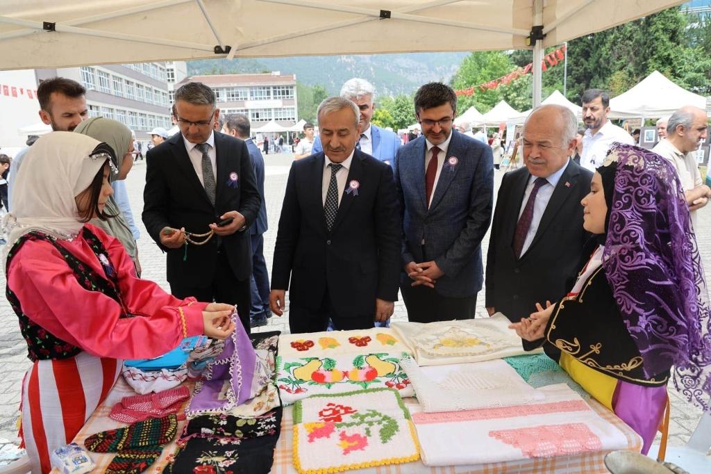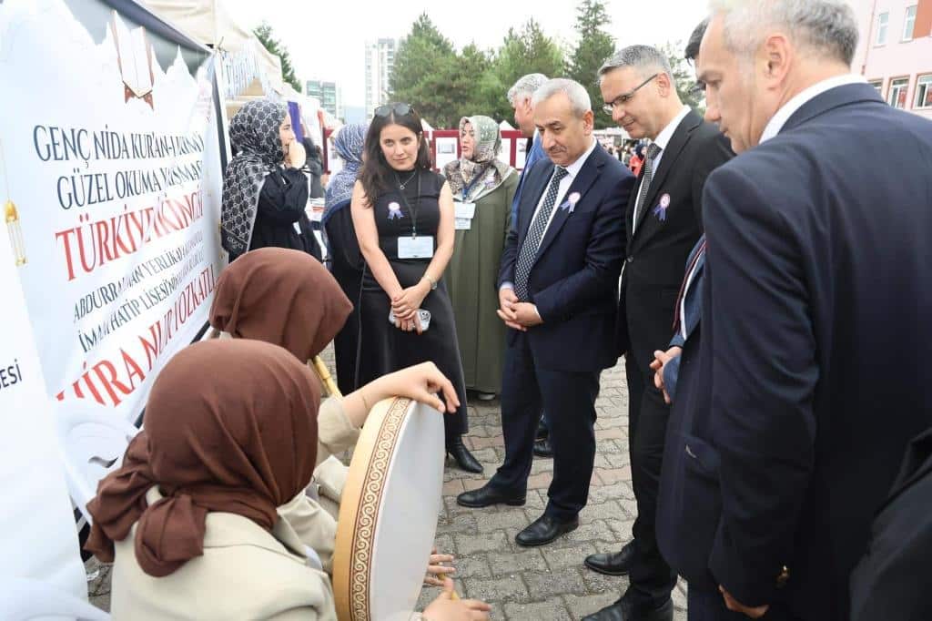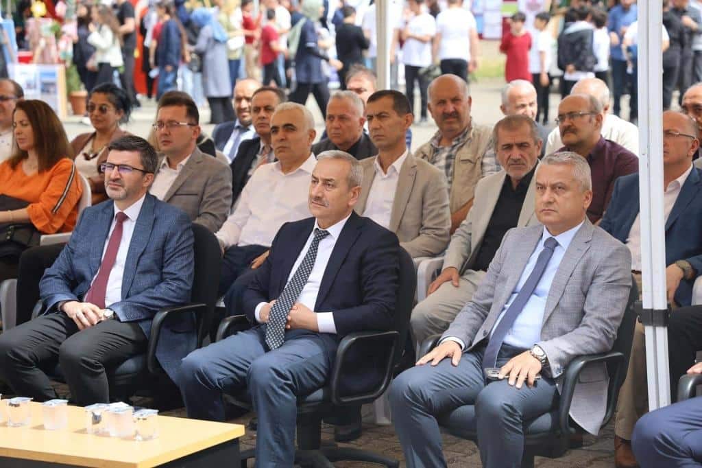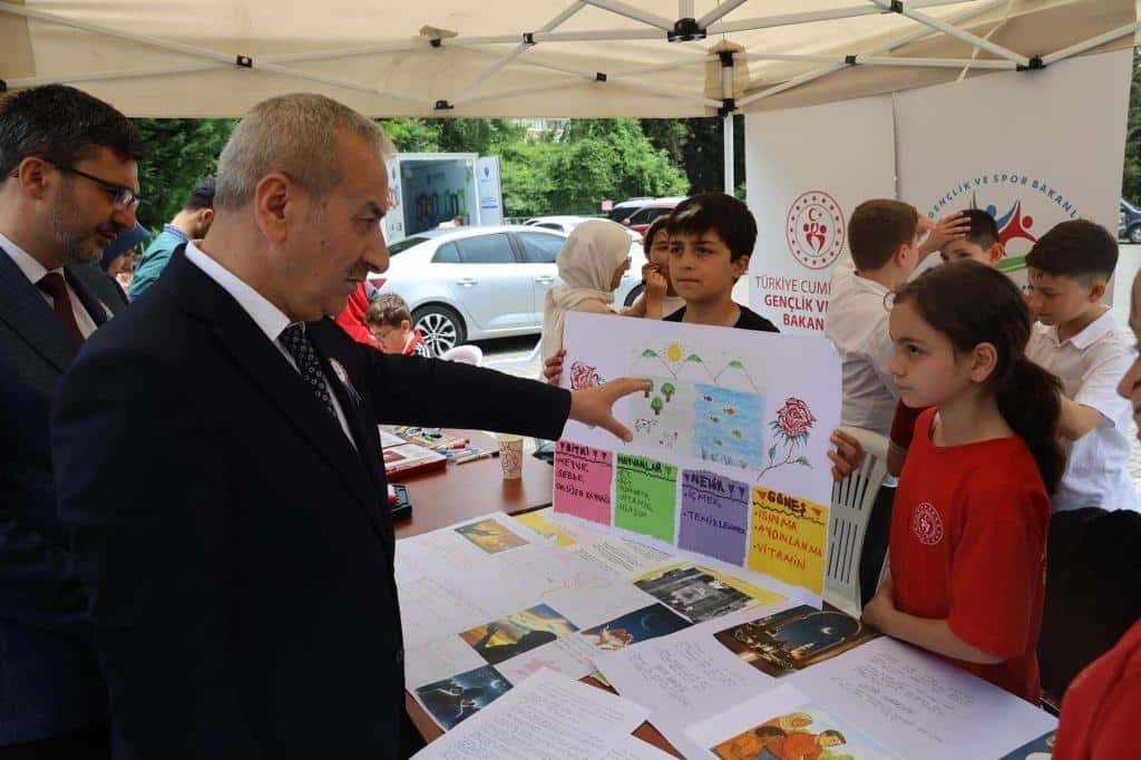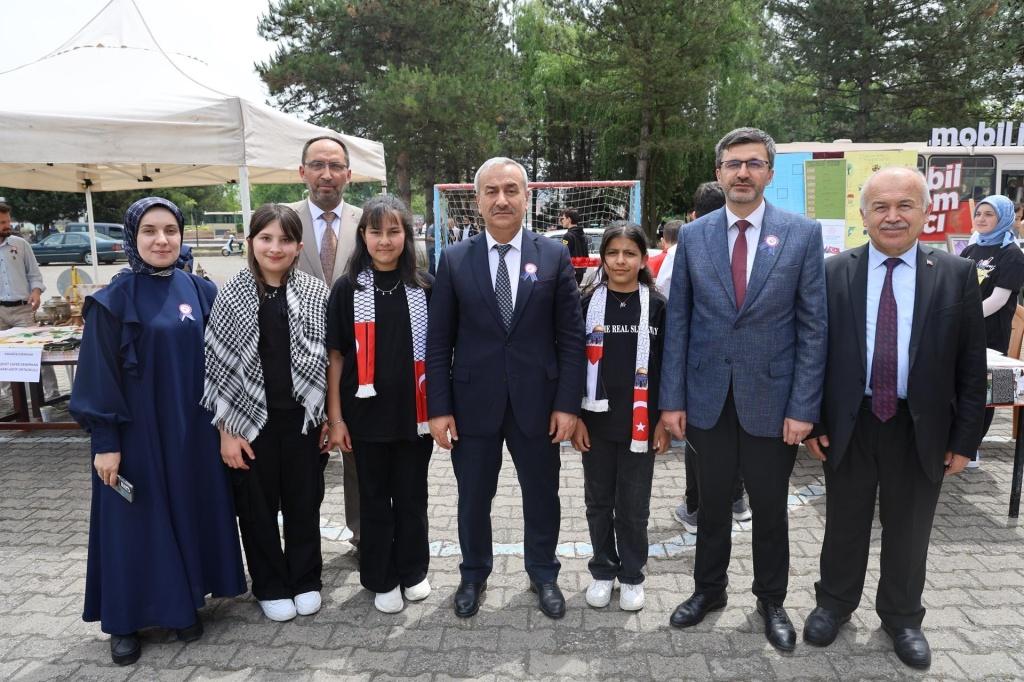 "Vakti Kuşanmak" temasıyla hazırlanan etkinlikte, 25 okulun projeleri sergilendi. Protokol üyeleri, stantları gezerek öğrencilerin yıl boyunca hazırladığı eserleri inceledi.