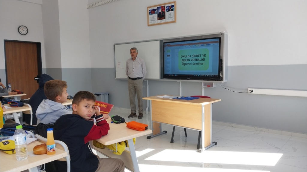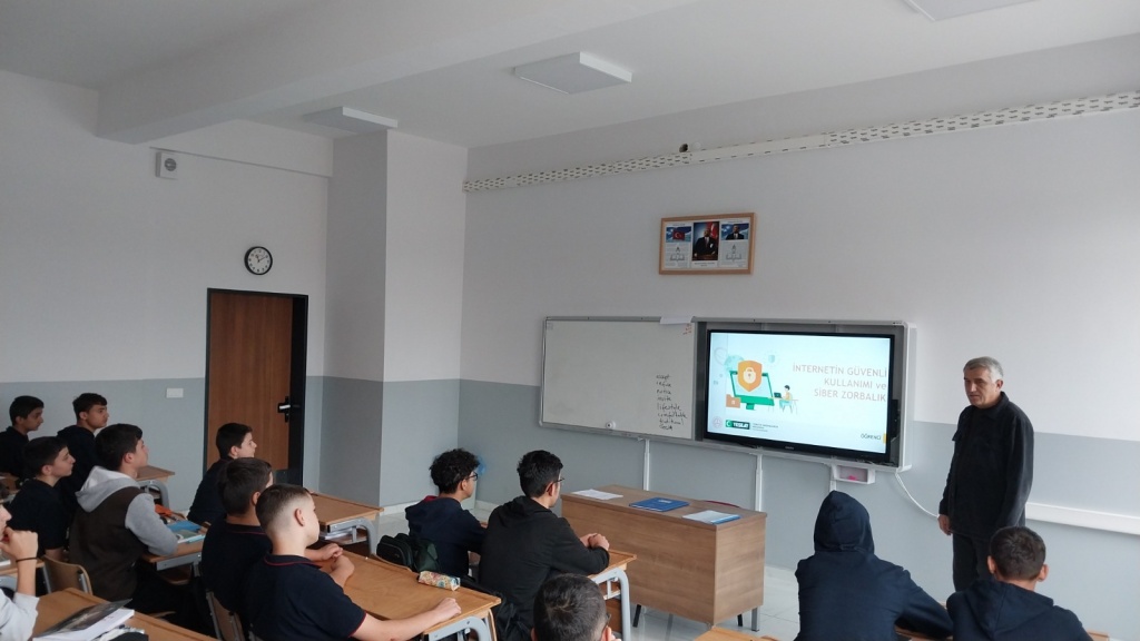 Okulumuza yeni gelen öğrencilerimize, Zorbalık, Siber Zorbalık, İnternet Bağımlılığı, Sınır Koyma konularına yönelik bilgi-beceri kazanmaları için, Okul Rehber öğretmenimiz Mehmet Arif ÇINAR sunum ve videolarla eğitim vermiştir. Kendisine teşekkür ederiz.